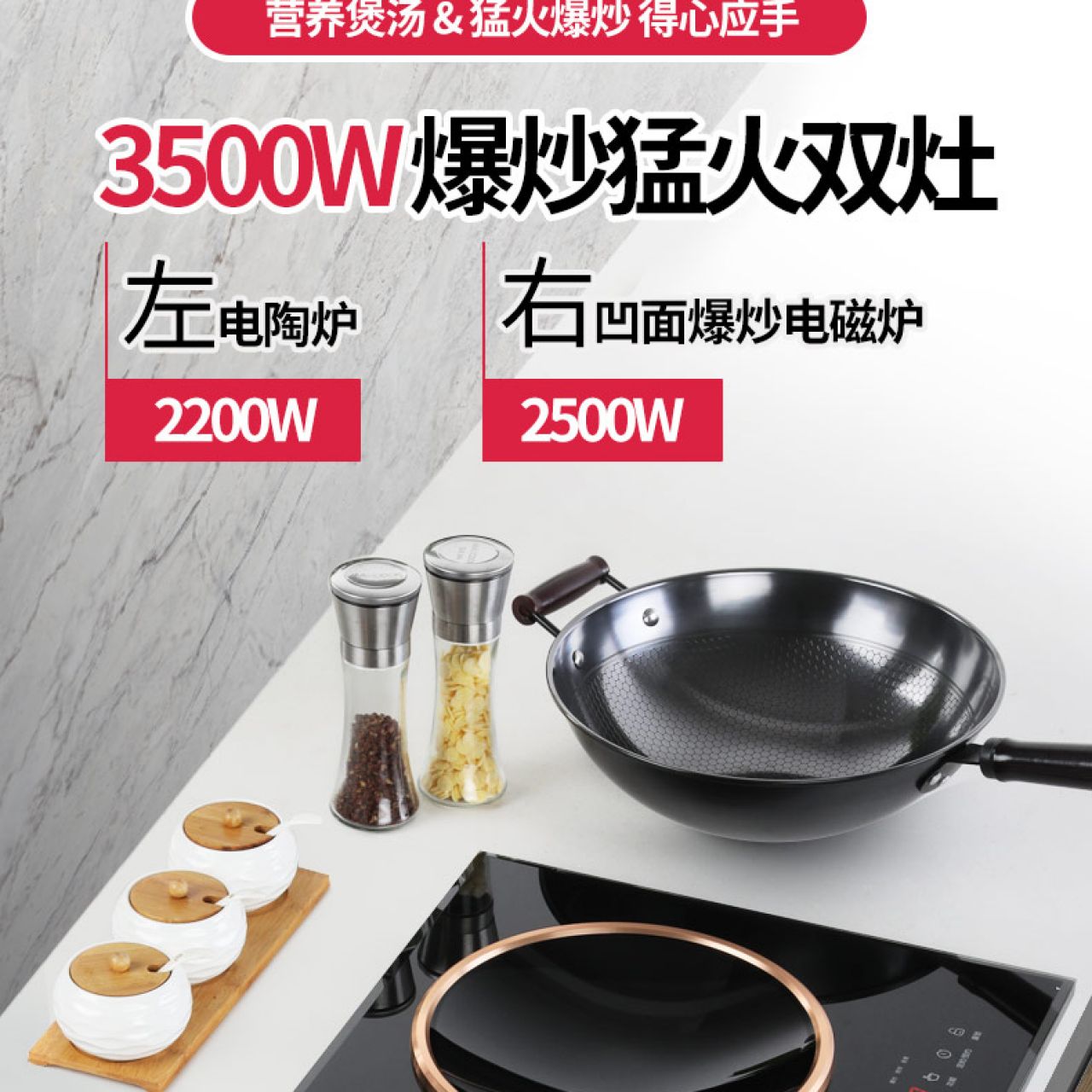 功能: 爆炒 炒菜 炖奶 蒸煮 煮粥 煲汤 火锅 烧水 煎炸 定温 定时 文火煲 武火 加热 暂停 快煮 保温 自动断电